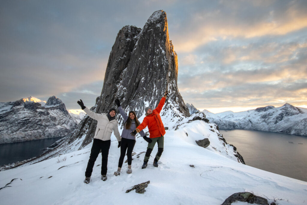 Ironically, hikers often miss the very views they were aiming for. Hesten offers a safer and more accessible alternative: the shelf between Hesten and Segla provides breathtaking panoramic views of Segla, the fjords, and surrounding peaks, while following a trail that is manageable for most people with proper winter equipment and reasonable fitness.